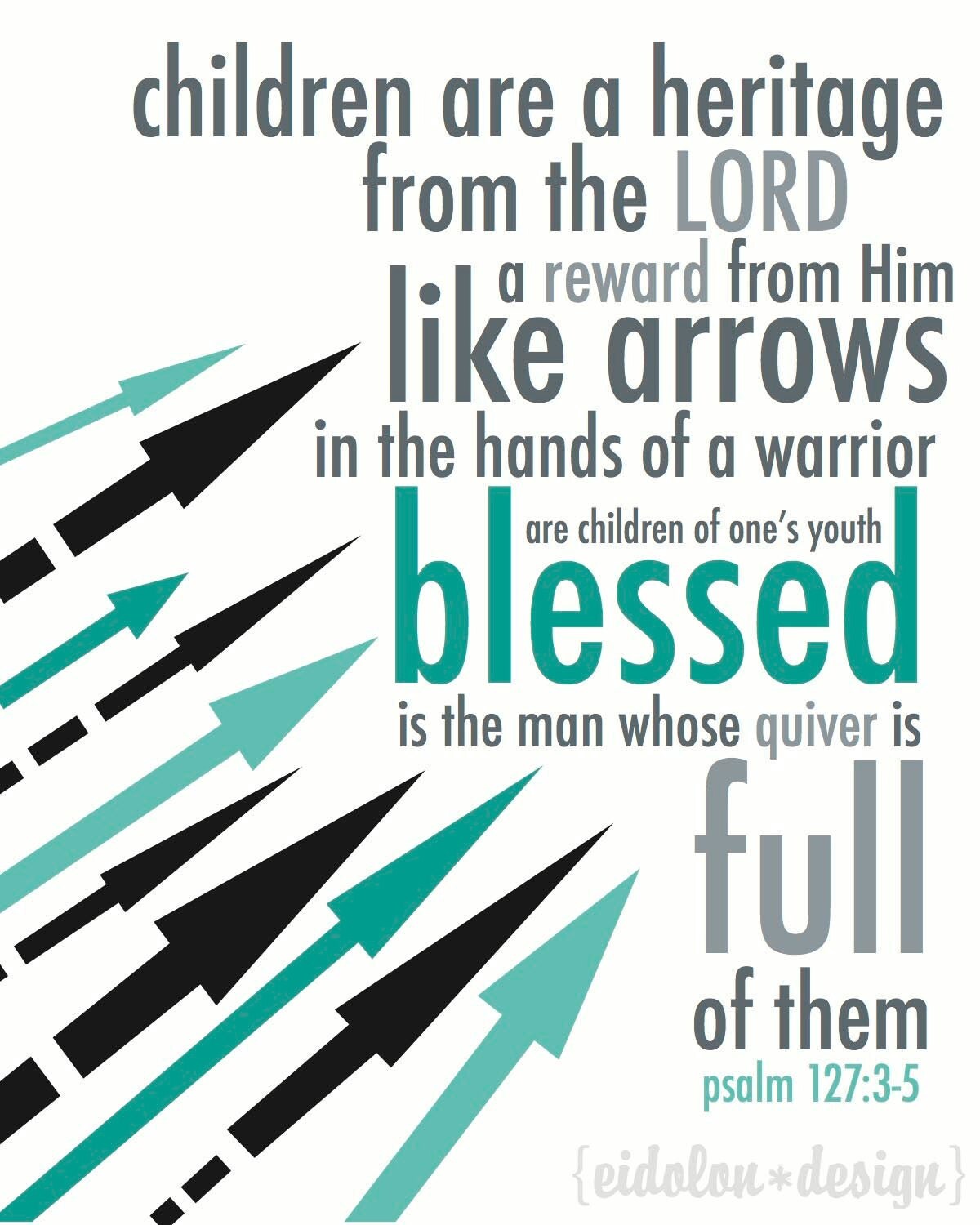 Children are a heritage from the Lord, a reward from Him like arrows in the hands of a warrior are children of one's youth. Blessed is the man whose quiver is full of them. Psalm 127:3-5